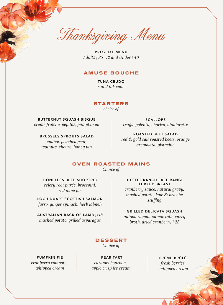 Thanksgiving Day Menu